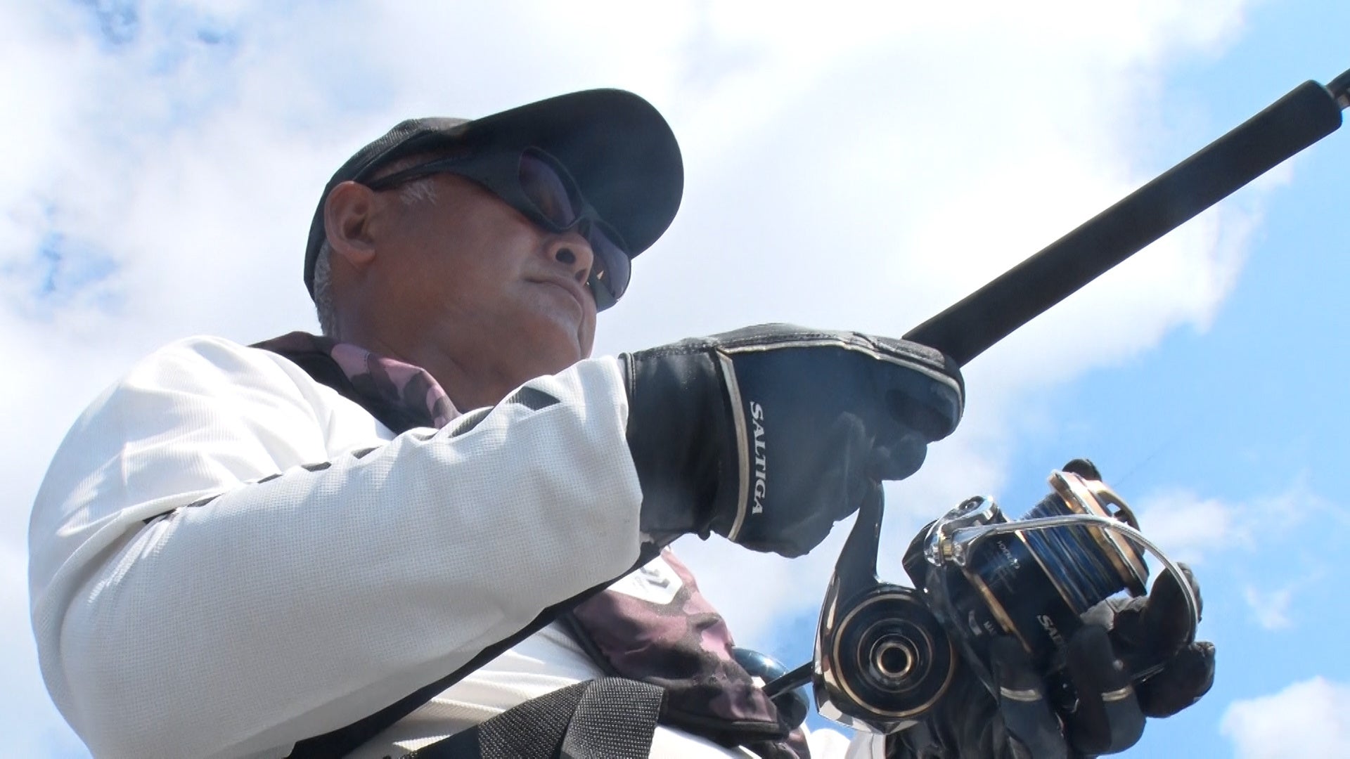 村越がアタリをとらえ、強いアワセを入れる。一気にラインが放出されていく。スプールが逆転し、鳴りやまないドラグ音。強烈にしなるロッド。世界中の歴戦の猛者を相手にしてきたソルトルアーフィッシングのパイオニア村越の全力ファイトは、見逃せない。
