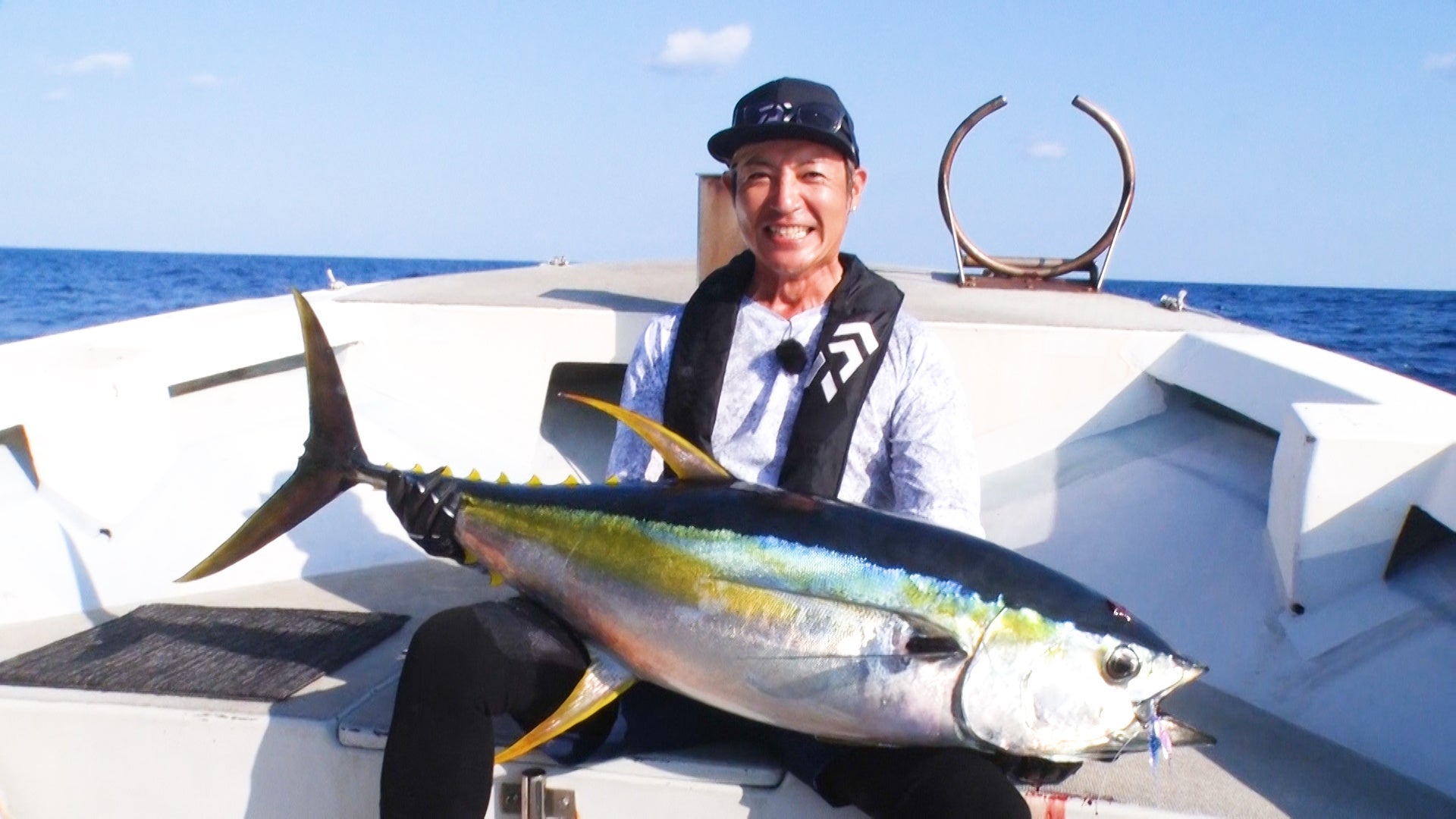 舞台となる久米島は、キハダのヒット率が国内随一。『パヤオ』と呼ばれる人口の浮き漁礁にキハダが集まり、その魚を狙い撃ちできる。全国に先駆け遊漁船にも開放したことで、高いヒット率を実現している。