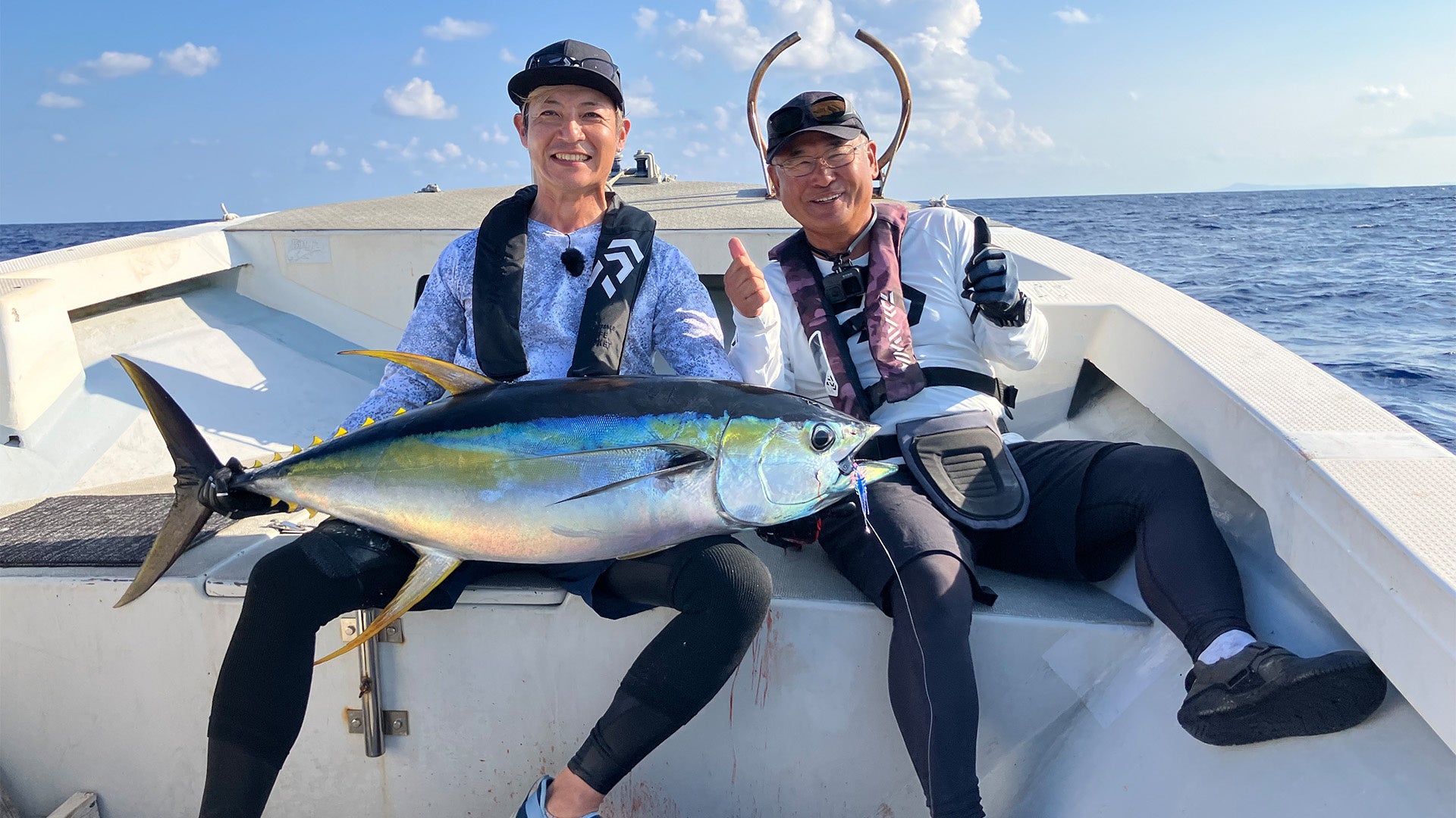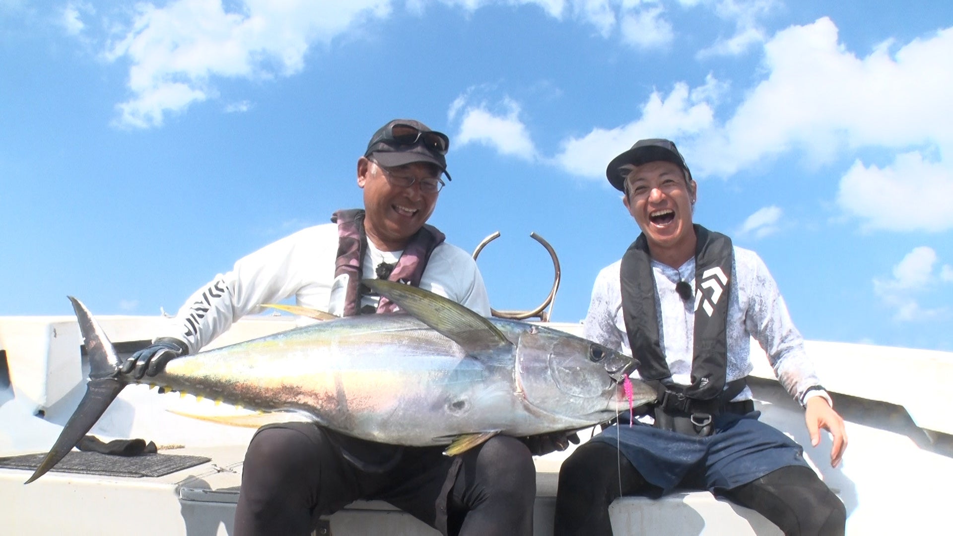 エビングで最高峰のゲームフィッシュ・キハダに挑む村越正海とつるの剛士の村つるコンビ。