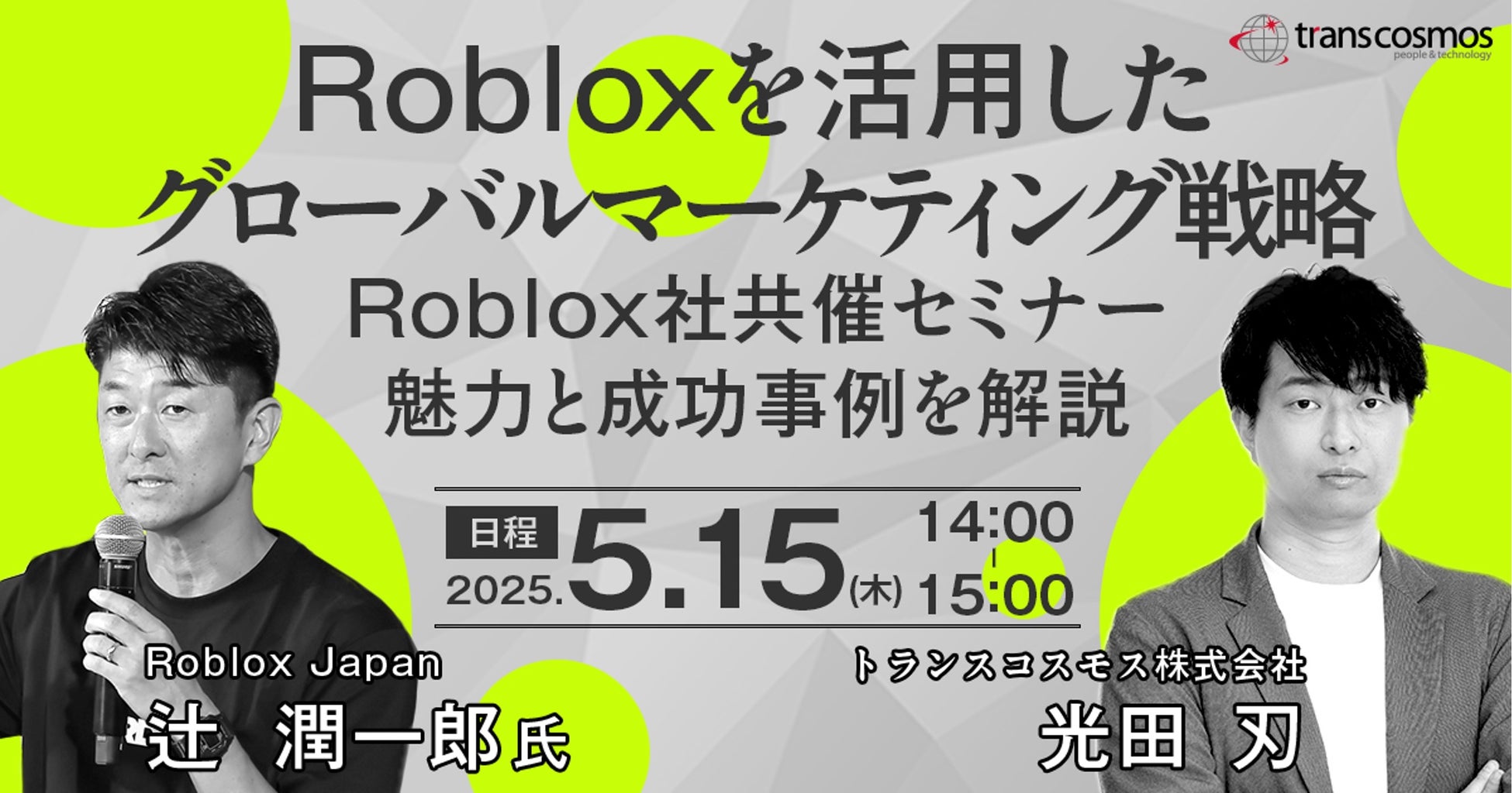 【トランスコスモスオンラインセミナー】Robloxを活用したグローバルマーケティング戦略を5/15(木)に開催