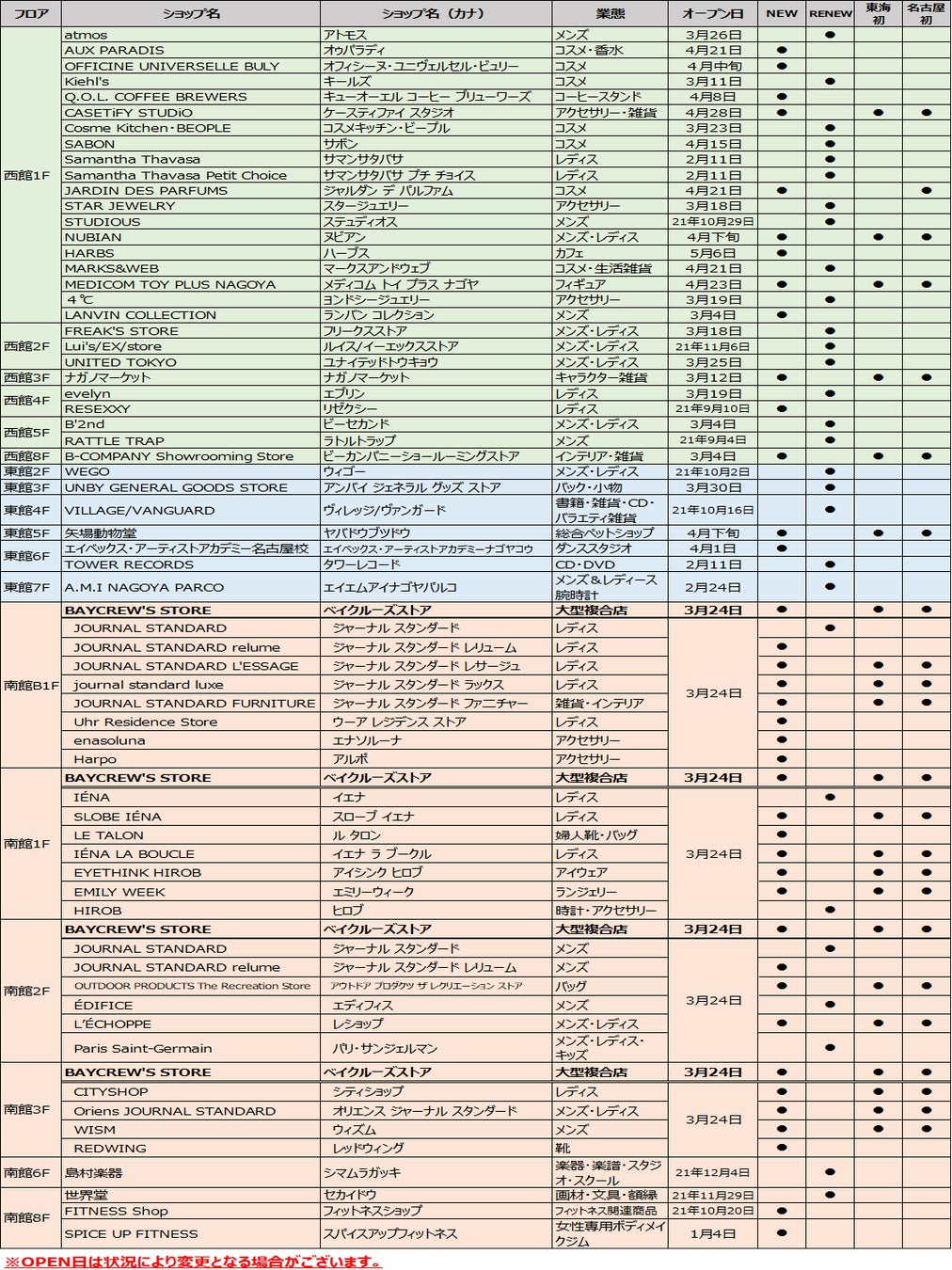 より進化した新しい名古屋PARCOをぜひ、貴媒体にてご取材・ご紹介いただきますよう、お願い申し上げます。