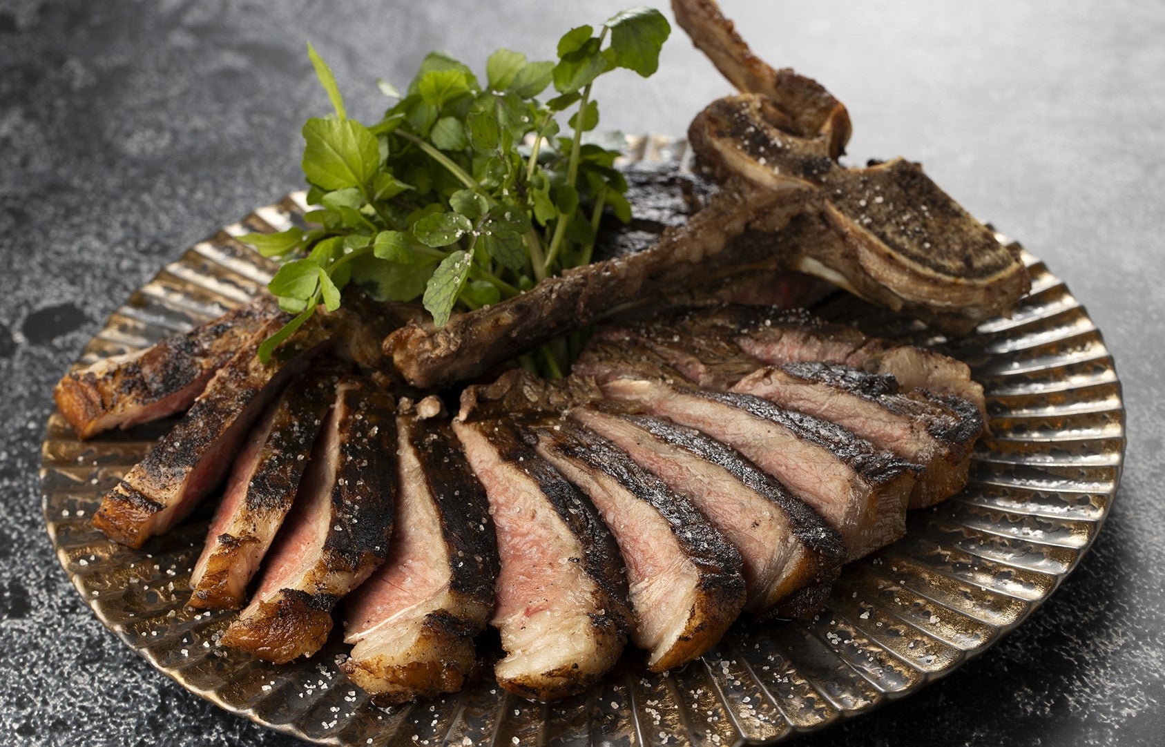 ひよこ豆のフムス ザータルピタチップ レモンオイル(1,808円) / ニョッコフリット ハモンセラーノ 揚げニョッキ パルミジャーノ・レッジャーノ(2,605円) / フルーツトマトとブッラータのカプレーゼサラダ バジル EXVオリーブオイル マルドン・シーソルト(2,808円) / カリフラワーステーキ 自家製アリッサオイル カルダモン ガーリック(2,504円) / ヴィーガンボロネーゼ スパゲッティ マッシュルーム フェンネル ガーリック(2,909円) / Tボーンステーキ(16,001円) / 海老と茸のアヒージョ 海老 国産キノコ XO醤 バゲット(2,605円) / しぼりたて和栗モンブラン カシスソース(2,010円)