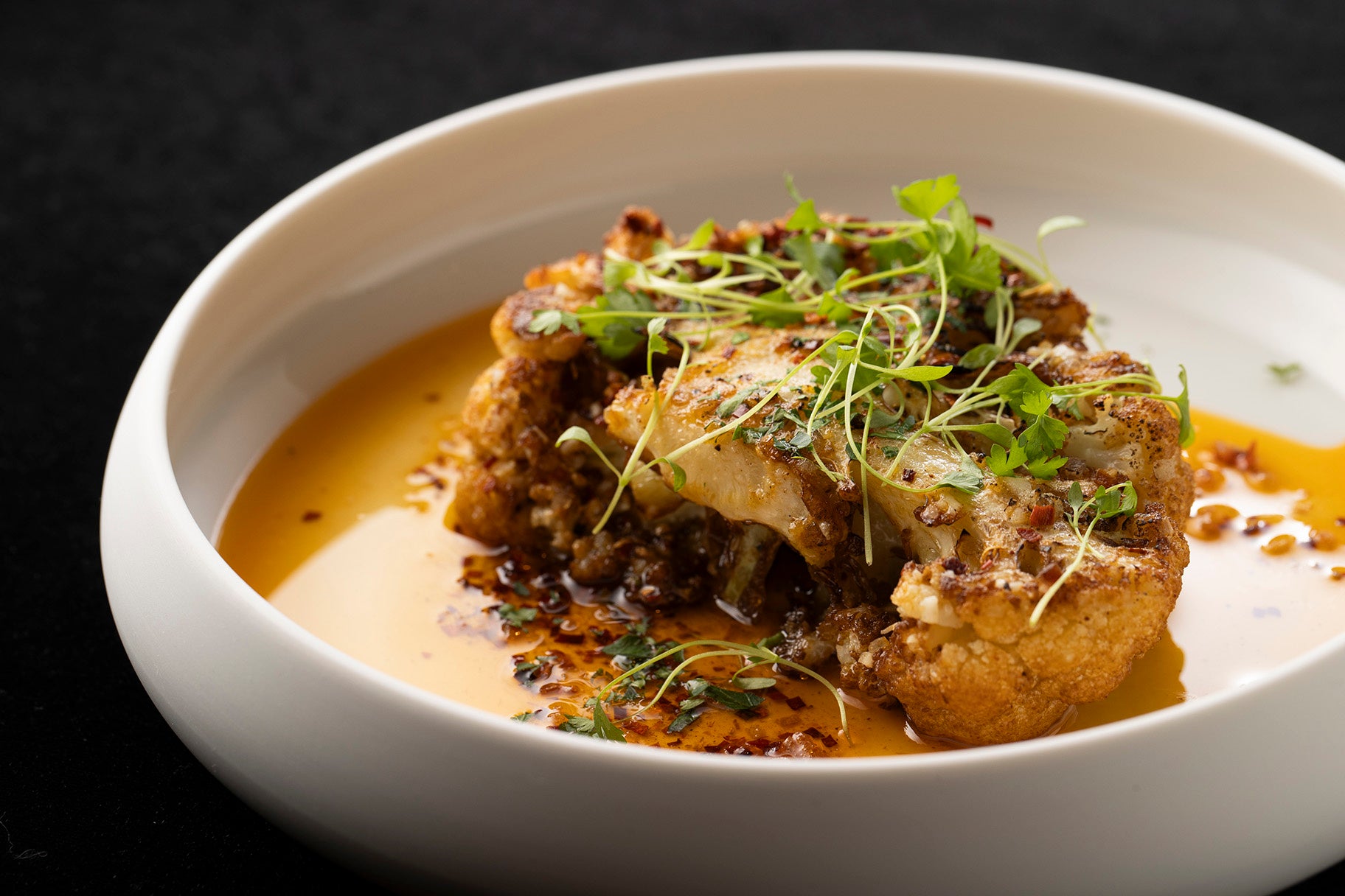さらに、完全菜食主義者“ヴィーガン”のライフスタイルに対応し、全時間帯でヴィーガンメニューをご用意します。なかでもおすすめの「カリフラワーステーキ」は、しっかりと焼き色をつけ野菜のコクと旨みを引き出した、オニオンやガーリックが味わい深いひと品。そのほか、中東アジアで愛されるフムスやファラフェル、茸とトマトの風味漂う「ヴィーガンボロネーゼ」など、国籍や嗜好が異なる方も楽しめるラインアップで、新たな食を体験する特別なひとときを共有していただけます。