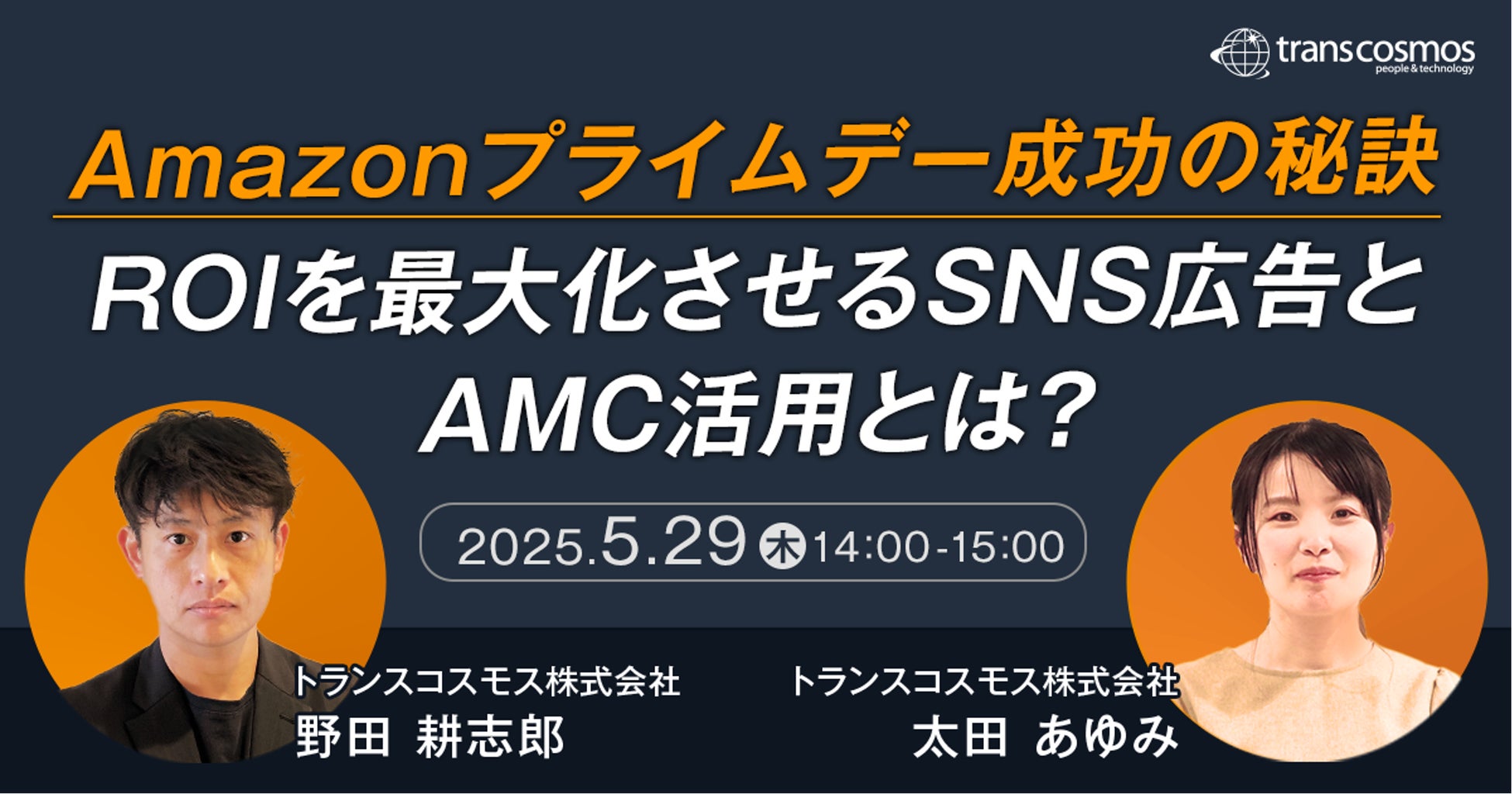 トランスコスモスは、オンラインセミナーAmazonプライムデー成功の秘訣 ROIを最大化させるSNS広告とAMC活用とは?を5月29日(木)に開催します。