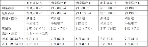 事業主体:大和ハウス工業、日本エスコン、イズミ