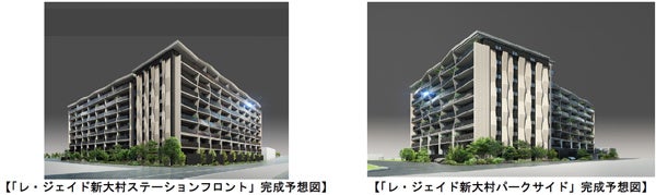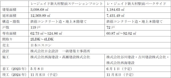 本事業では、日本エスコンがファミリー世帯をターゲットにした総戸数191戸の分譲マンション「レ・ジェイド新大村ステーションフロント」「レ・ジェイド新大村パークサイド」を開発します。共用部にはコワーキングスペースとキッズコーナーを設置し、コミュニティの場を設けます。専用テラス付住戸や100㎡超のプランなど、3LDKを中心とした豊富な間取りタイプをご用意します。