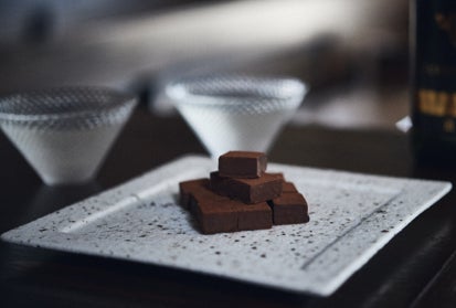 食後のリラックスタイムをリッチに日本酒とチョコレートのバランスの良いマリアージュをお楽しみいただけます。