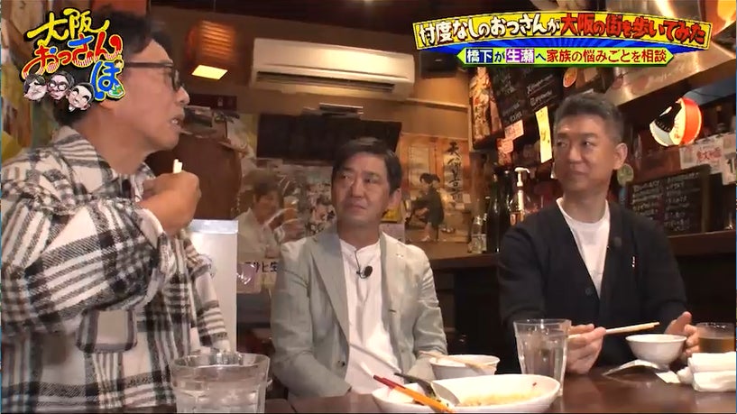 そして、谷町発祥のB級グルメを堪能するおっさんたちだが、ここで橋下が生瀬に家族の「ある悩みごと」を相談する!