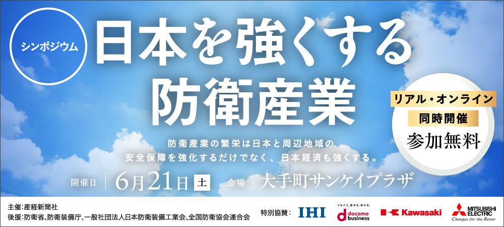 産経新聞社は、防衛産業の重要性を多くの国民に理解してもらうため、シンポジウム「日本を強くする防衛産業」を大手町サンケイプラザ(東京都千代田区)とオンラインで6月21日(土)午後1時から開催し、参加者を募集します。