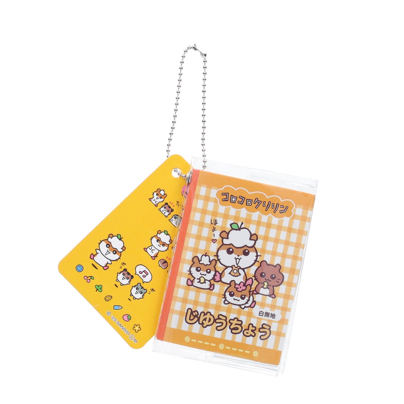 表紙をめくると白無地ノートが16ページあり、実際に文字が書ける仕様で、ミニサイズのメモ帳として活用できます。また、ボールチェーン付きで、お手持ちのポーチやバッグなどに付けてキーホルダーとしての使用もおすすめです。
