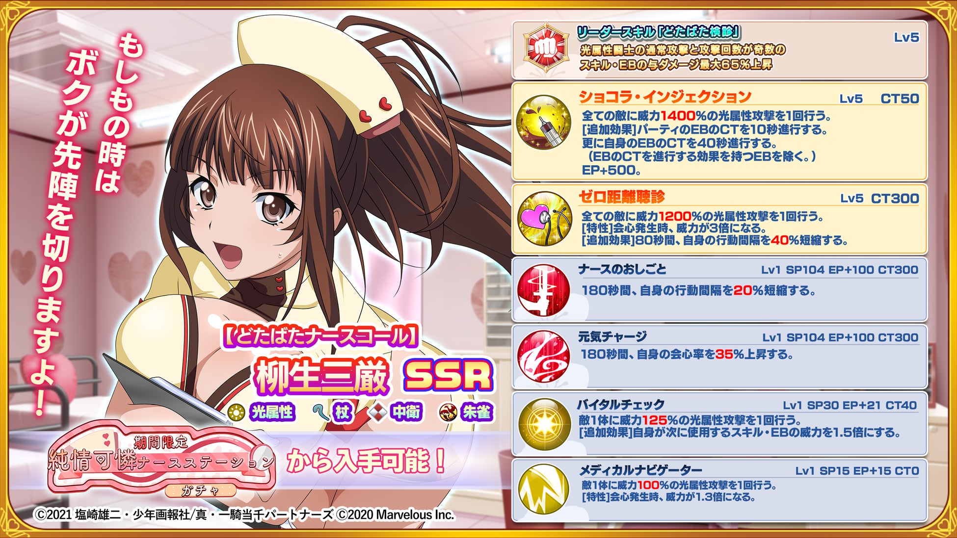 本日開始の「純情可憐ナースステーションガチャVol.1」では、新たに「【どたばたナースコール】柳生三厳」(CV: 田辺 留依)が登場!