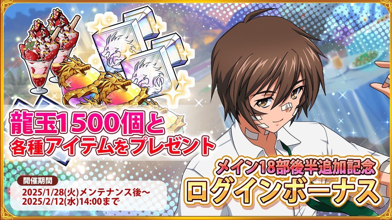 メイン18部後半追加記念ログインボーナスで「龍玉1500個」と豪華アイテムをGET!
