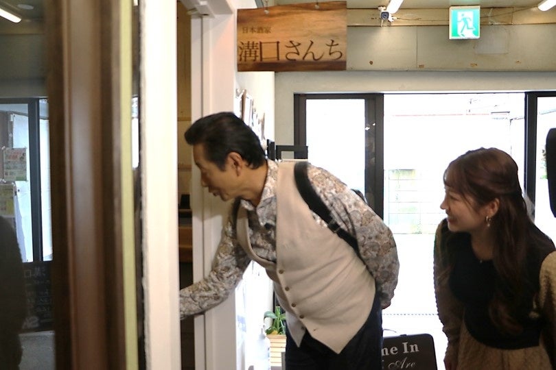 2人は再び街に。【大阪屋マーケット】というレトロな雰囲気の市場へ。内装はオシャレにリノベーションされ、様々なお店が立ち並んでいます。その中で日本酒に魅せられた溝口夫妻が営む【溝口さんち】という立ち飲み屋さんへ。