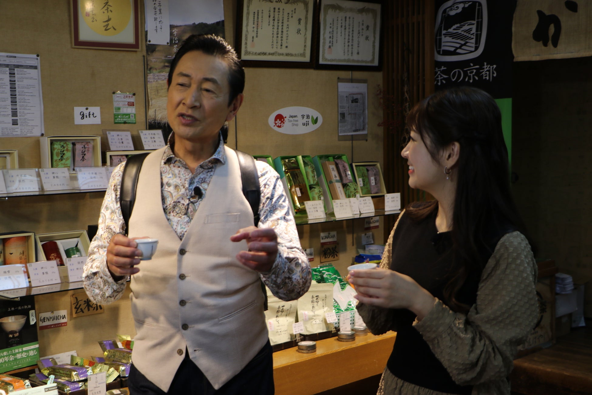 続いては将軍家の御用を担った茶師・上林家の一族の末裔が営む【お茶のかんばやし】で『秋の熟成茶』を試飲させていただきます。