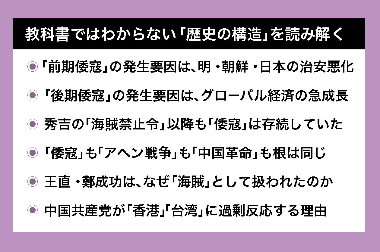「倭寇」とは中国そのものだ。この命題が正しければ、「倭寇」という史実の意味までみなくては、現代はわからない。逆に「倭寇」という歴史的な参照軸をもてば、目前の中国を観察理解する一助になるはずである。