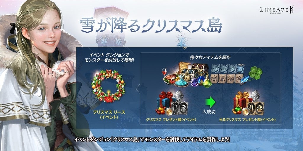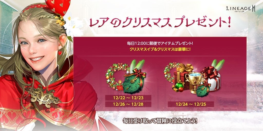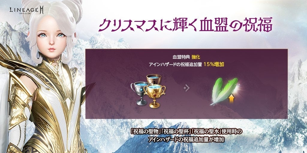 https://lineage2m.ncsoft.jp/board/notice/view?articleId=61c22f448fcd390001675277●「クリスマスに輝く血盟の祝福」開催