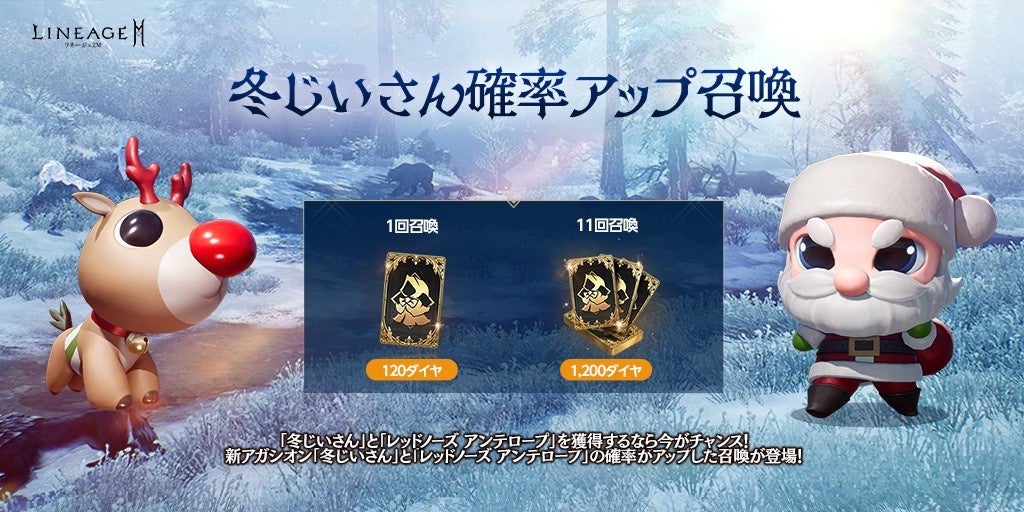 『リネージュ2M』第4のワールド ダンジョン「覚醒の島」実装!クリスマスに合わせて新規アガシオン「冬じいさん」「レッドノーズ アンテロープ」が登場!クリスマス イベント第2弾が開催