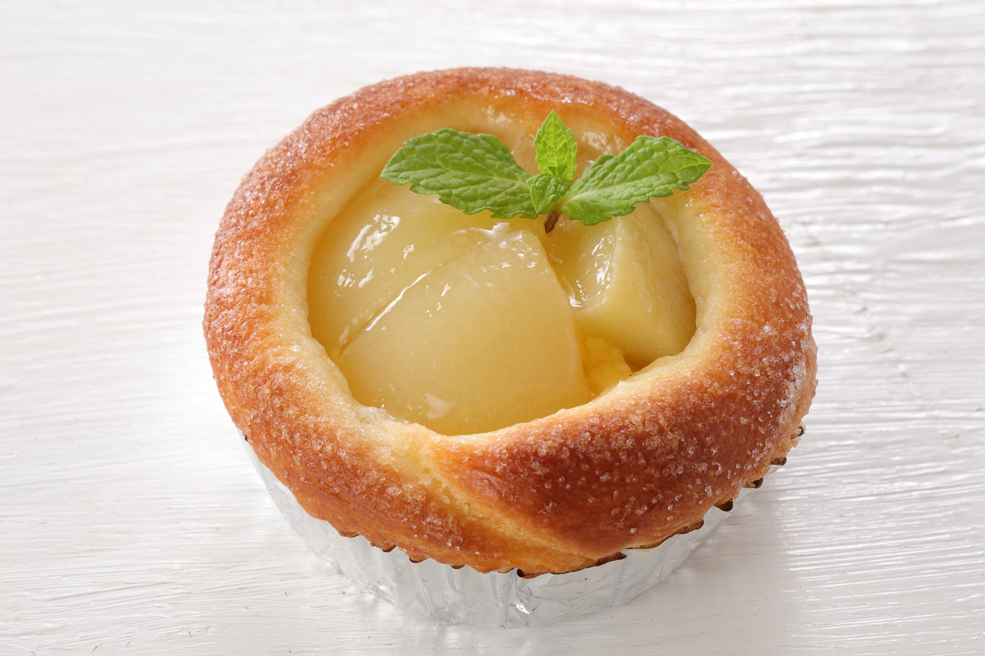 バターをたっぷり練り込んだブリオッシュ生地に、カスタードクリームを絞り、白桃をのせて焼き上げました。桃の果肉感と味わいを活かしたやわらか食感のスイーツパンです。