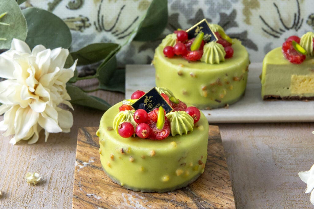 ピスタチオチョコレートに包まれているのは濃厚でなめらかなピスタチオクリーム。 フランボワーズとグロセイユのほのかな酸味に芳醇なビスキュイショコラがコク深いピスタチオの風味を絶妙に引き立てます。