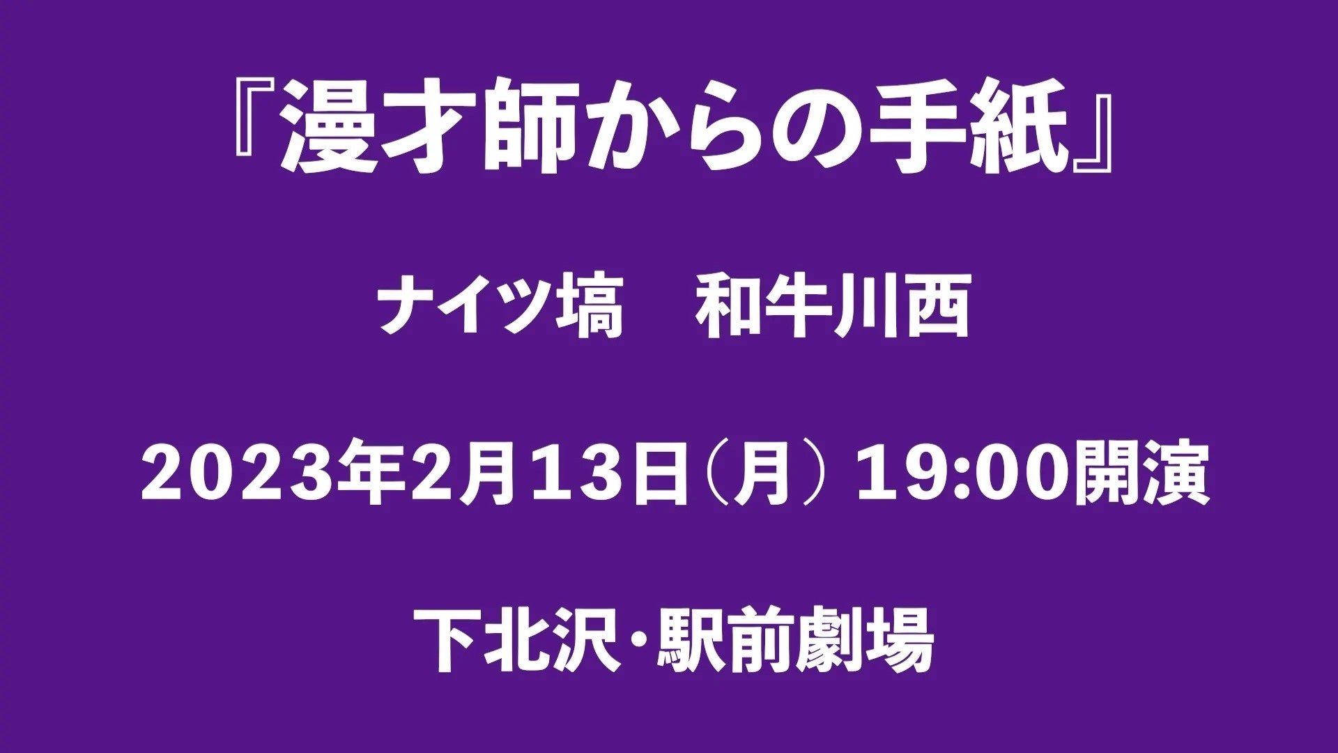 漫才師が漫才師から届いた手紙を基に漫才や芸事について話す企画