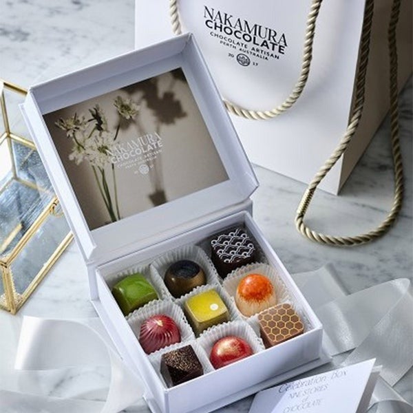 オーストラリア・パースで活躍中のショコラティエ中村有希が世界のラグジュアリーな味覚から発想を得た9粒で「Life is a celebration “人生とは祝福”」を表現。
