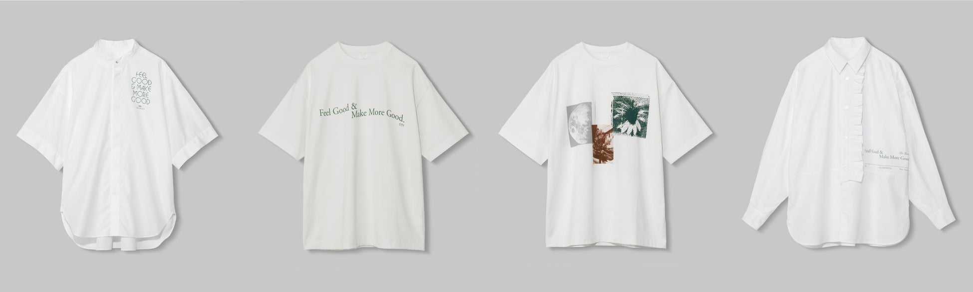 O0uが、プロダクトを通して、社会貢献できるかの「体験を作っている」という点で興味深いなと思ったことから、コラボレーションに繋がりました。「Feel Good」なコトを見つけ、そしてそこからさらに「Make More Good」というアクションを起こすという連鎖反応を、この言葉で表現しています。でも、固いメッセージではなく、あくまで、自分らしく、シンプルに、を意識しました。