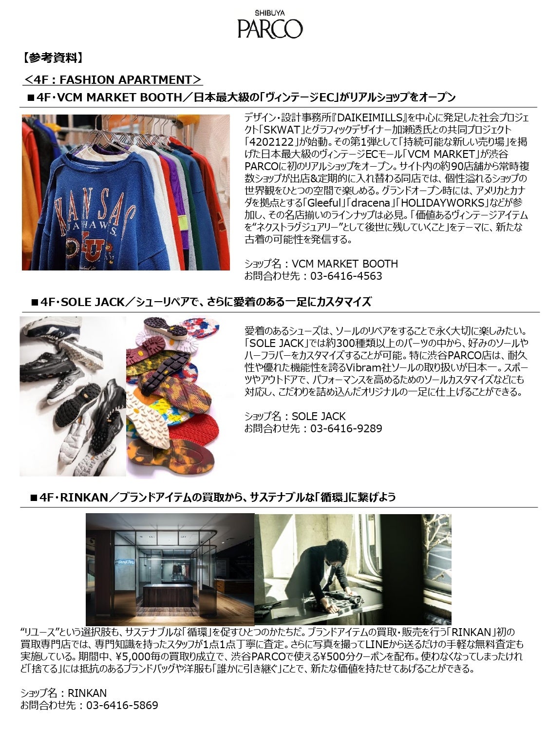 今年2月には、社会プロジェクト「SKWAT」と連携し、持続可能な新しい売り場を目指して4Fにサステナブルをテーマにした「VCM MARKET BOOTH」をオープンしました。それに続く第2弾の企画として「 “CYCLE shibuya parco sustainability” 」を開催します。