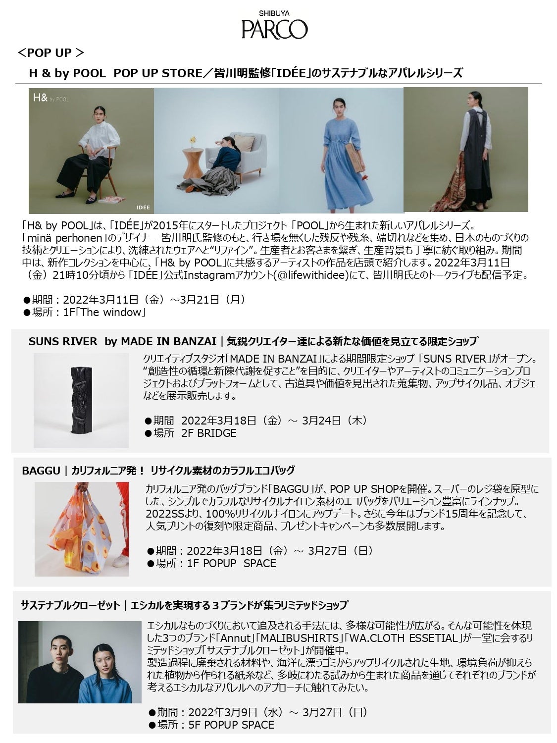 また同時期に、「H& by POOL POP UP STORE」をはじめとしたサステナブルをテーマにしたPOPUP SHOPもオープンします。