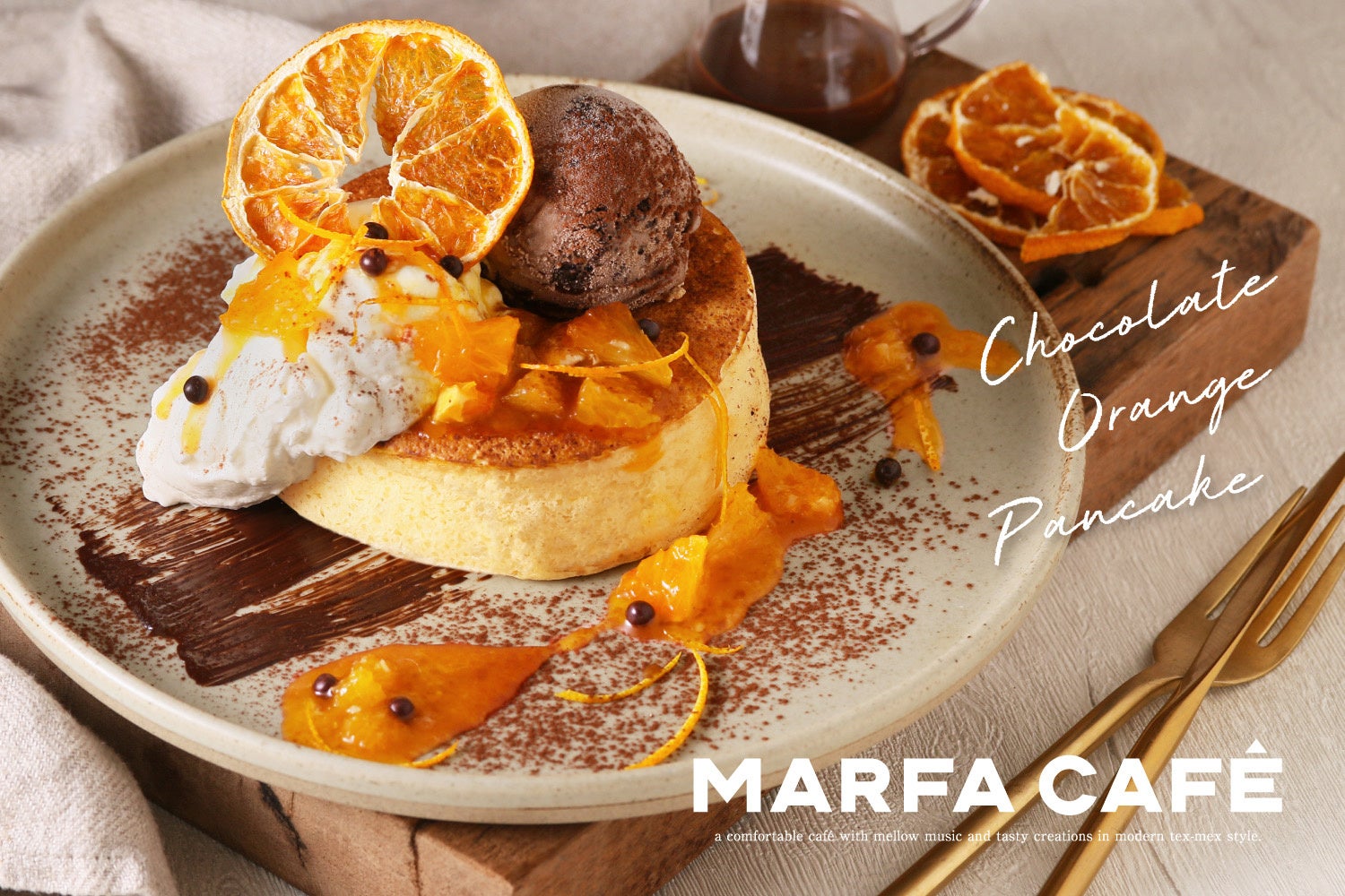 オレンジが華やかに香る、至福の「ショコラオランジュパンケーキ」が横浜モアーズ3F MARFA CAFEから、12/4(水)より新登場!!