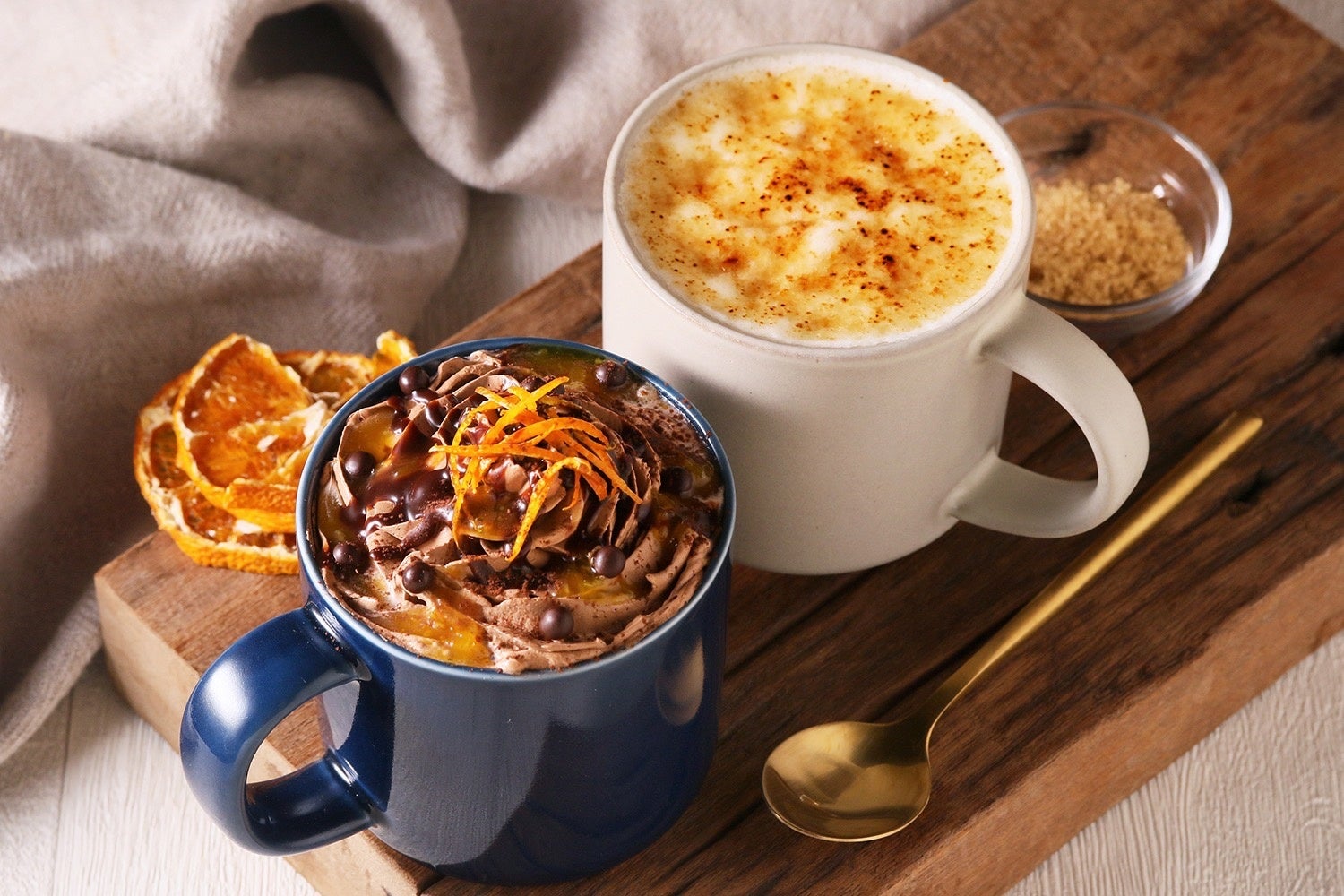 ホットココアに華やかなオレンジソースが上品香る贅沢デザートドリンクです。
