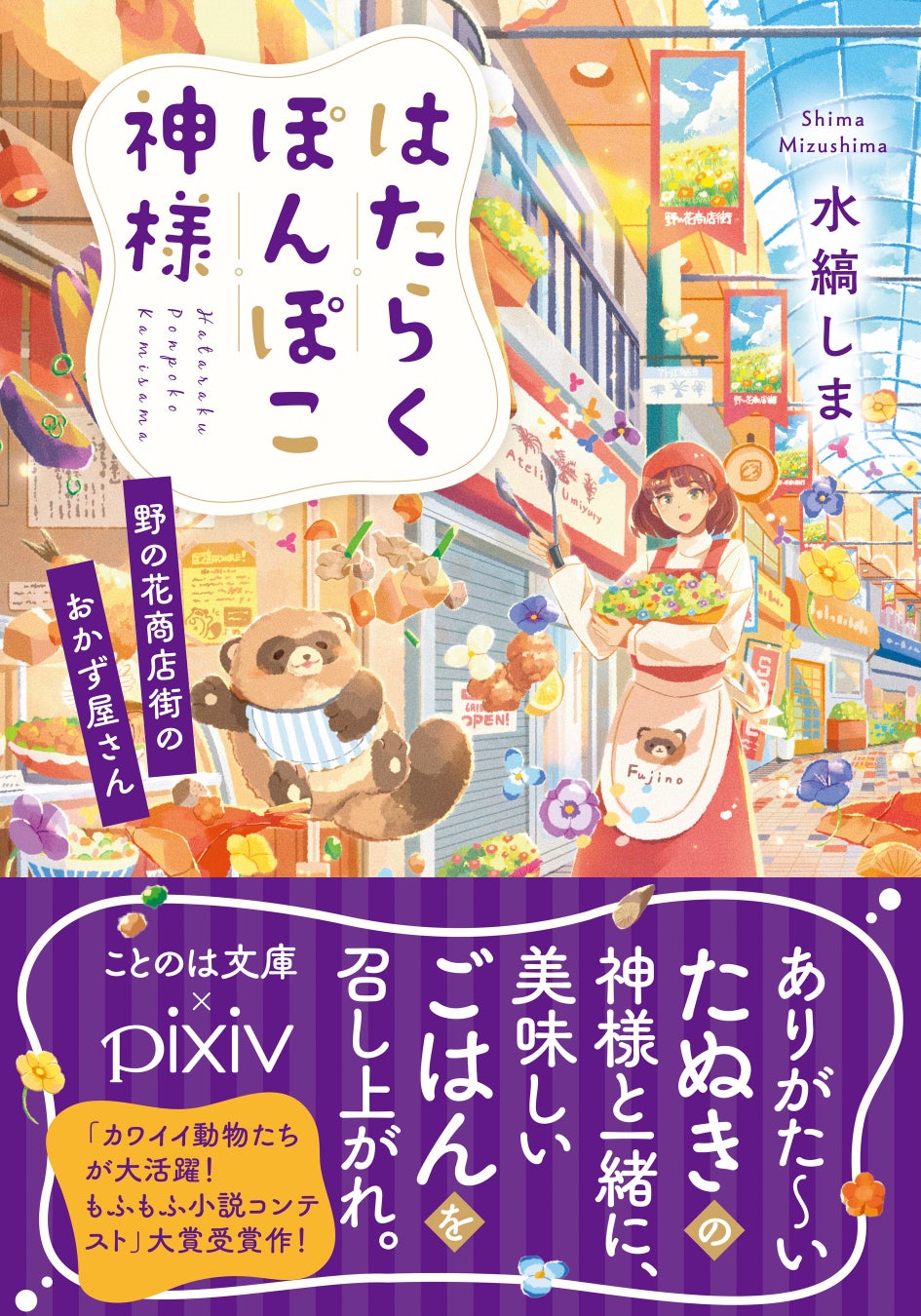 ことのは文庫✕pixiv『カワイイ動物たちが大活躍!もふもふ小説コンテスト』大賞受賞作!のどかで美味しいストーリー『はたらくぽんぽこ神様 ~野の花商店街のおかず屋さん~』10月19日発売!