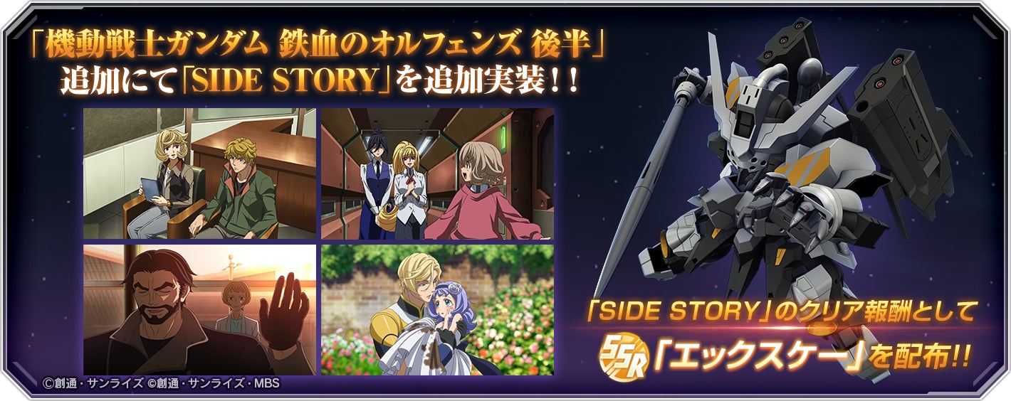 また、あわせて「機動戦士ガンダム 鉄血のオルフェンズ」に登場したキャラクターにまつわる物語を描いた「SIDE STORY」も実装されます!