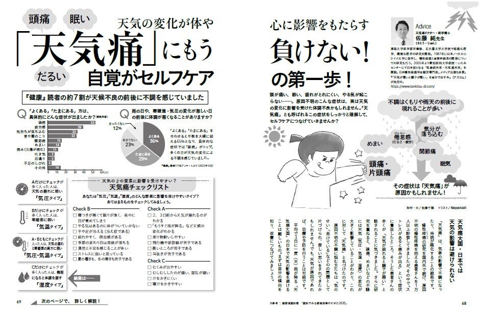 - 雨の日がつらい「天気痛」の解決法や「腸活で免疫力を上げる」も!