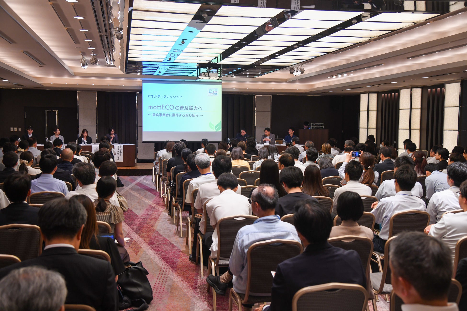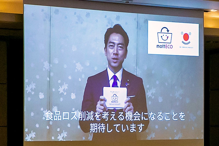 パネルディスカッションの会場では、環境大臣 浅尾 慶一郎氏、農林水産大臣 小泉 進次郎氏からビデオメッセージにて「mottECOの取り組みの意義」や「1,500店舗、100トンの食品ロス削減を今年度の目標に活動する、mottECO普及コンソーシアムの輪が広がることへの期待」などのメッセージが発信されました。
