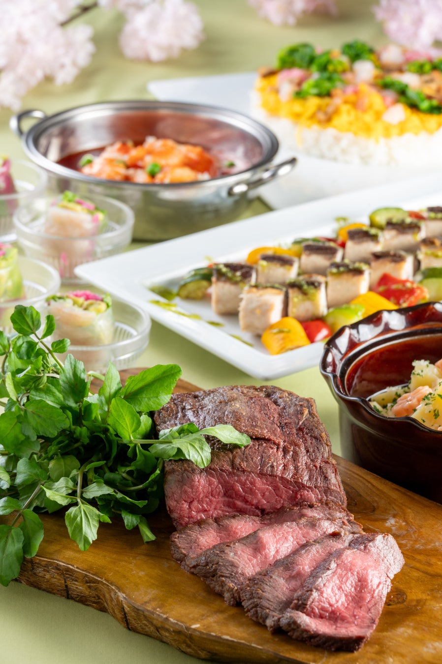「鉄板焼 みや美」では上質な常陸牛と、活鮑や国産イセエビなどを贅沢に目の前で焼き上げるコースを、「ダイニング フェリオ」では「ホットドック」や「ちらし寿司」など、お花見をイメージしたメニューを取り揃えたビュッフェをお愉しみください。