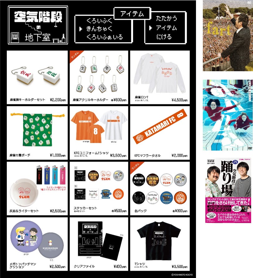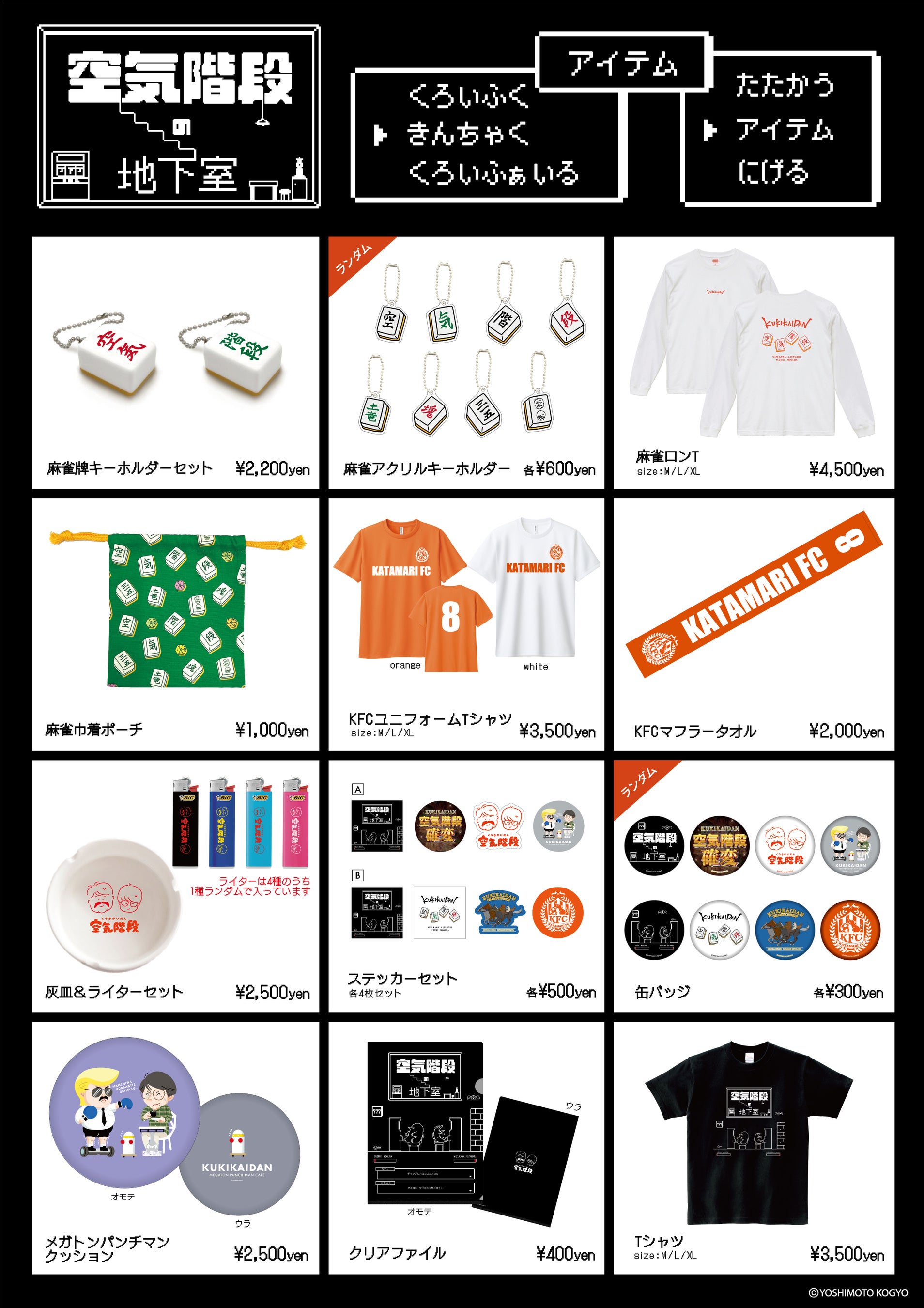 ポップアップストアでは、キングオブコント優勝ネタ「メガトンパンチマン」の小道具の展示、店内を楽しめる空気階段による音声ガイドの実施、オリジナルグッズを販売します。鈴木もぐらの趣味「麻雀」をモチーフにしたロンTや巾着ポーチ、本物の麻雀牌を使ったキーホルダーはファン必見!また、サッカー好きの水川かたまりがラジオ番組で結成したサッカーチーム「かたまりFC」のユニフォームTシャツ、マフラータオルも登場します!