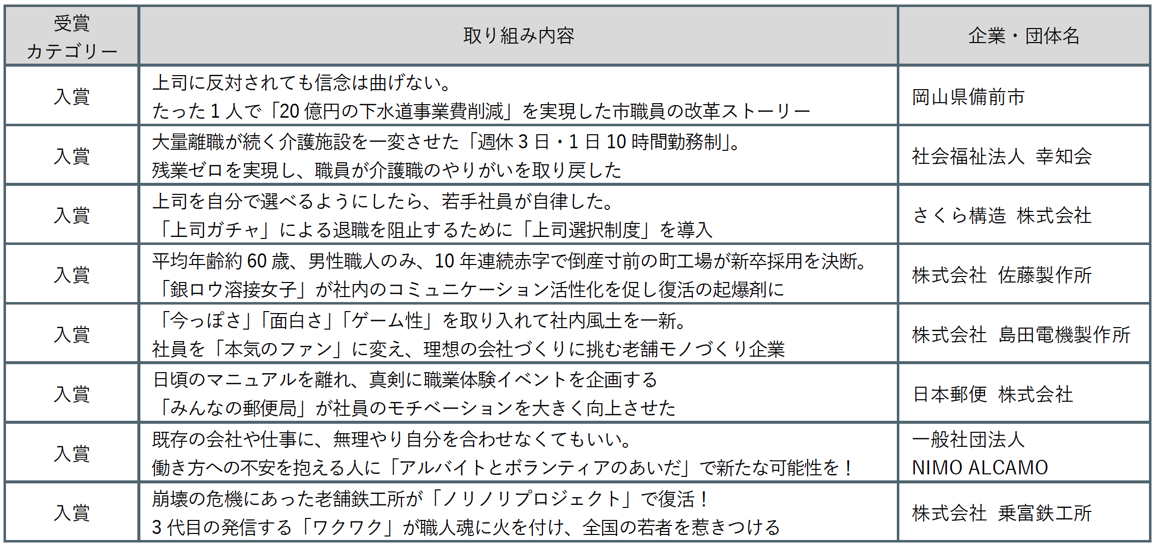 ~イキイキを取り戻す郵便局や介護施設、老舗工場と鉄工所では世代を超えた働き方改革~個を生かす「人的資本経営」のヒントとなる8つの取り組みを表彰