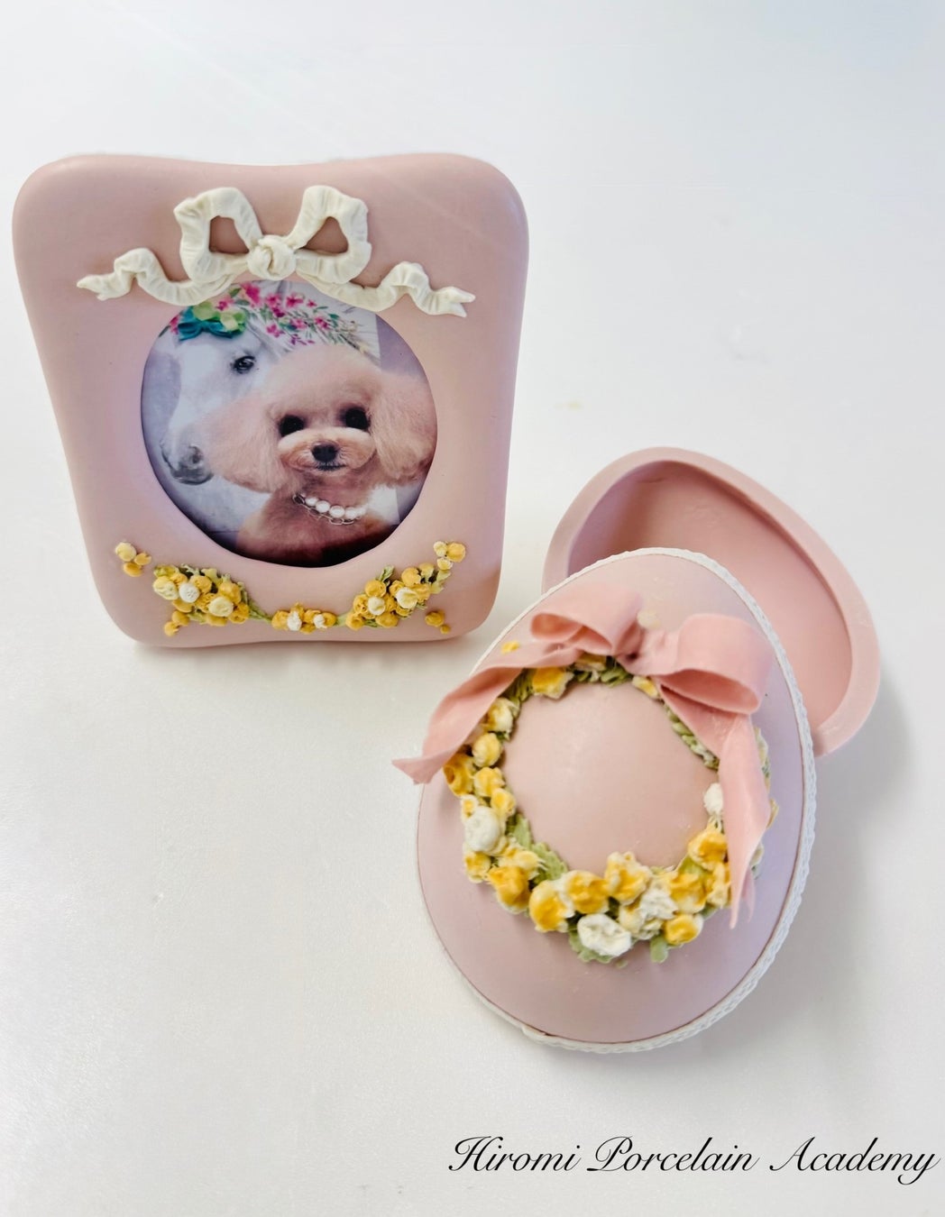 西洋陶芸を通して、写真立てとイースターエッグボックス作りを体験していただけます。春のぽかぽかとした陽気や、咲き始める花々を心に浮かべながら“春のよろこび”を表現しましょう。色はミモザカラーのイエロー、またはピンクからお選びいただけます。2・3月続けて同講座を開講しますのでご都合のいい日程でご参加いただけます。