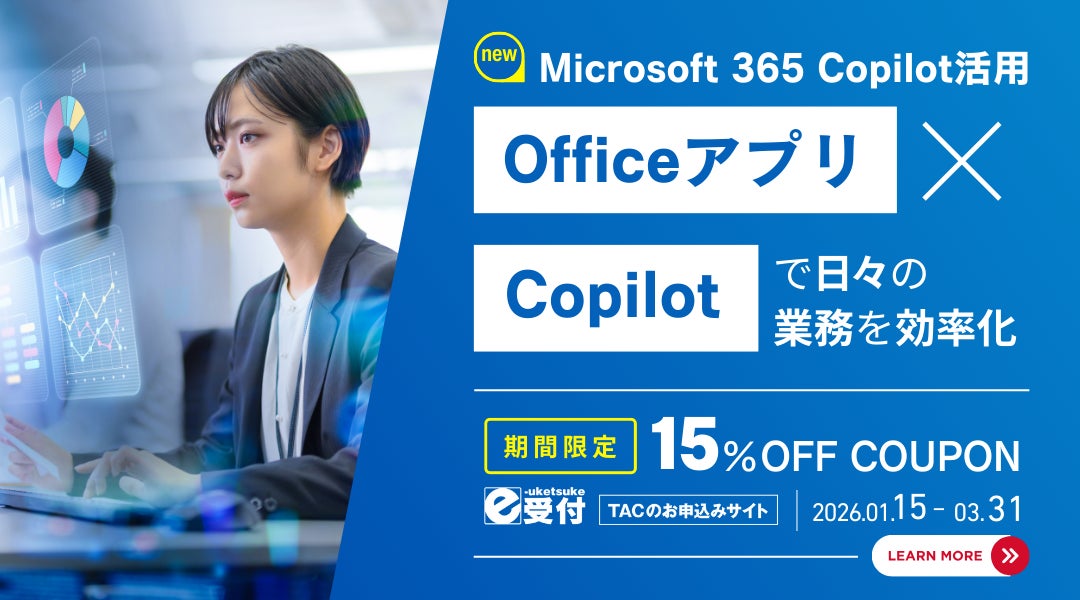 ≪ 1/15新規コース申込開始 ≫業務効率UP!Microsoft 365 Copilot活用 Web通信コース【TACパソコンスクール】