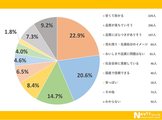 政府備蓄米に対するイメージについてのアンケートでは、「安くて助かる」と回答した人が最も多く22.9%となりました。次に多かったのが「品質が落ちていそう」で20.6%、「品質にばらつきがありそう」が14.7%という結果になりました。