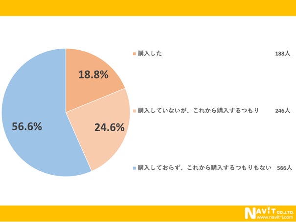 政府備蓄米を購入しましたか?というアンケートでは、「購入しておらず、これから購入するつもりもない」と回答された人が過半数で56.6%という結果になっています。ちなみに「購入した」という人は18.8%にとどまっています。