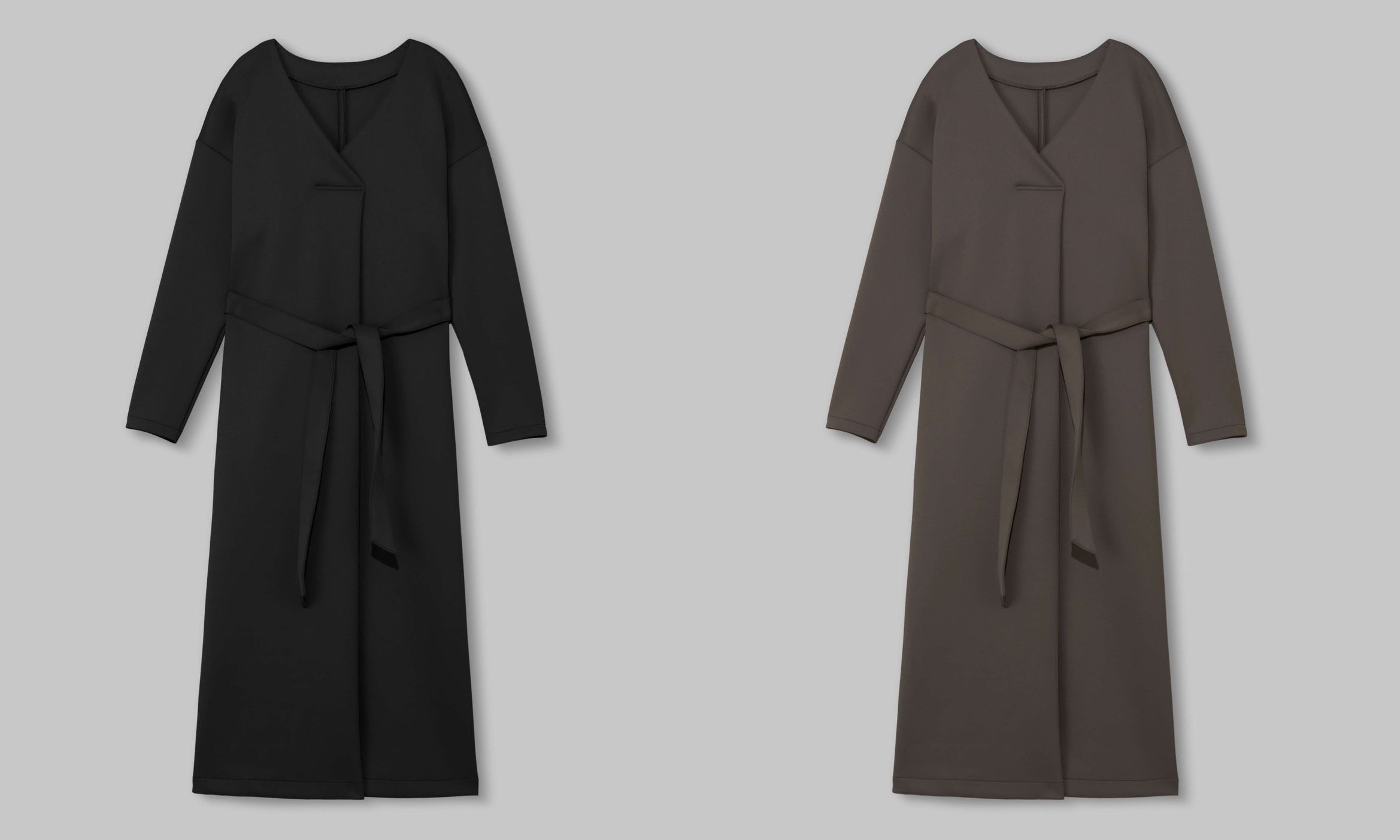 一枚で決まるワンピースはスタイリングいらず。デコルテと顔回りがすっきりキレイに見えるVネックラインになっています。素材のキレイな表面感とストンとしたシルエットはとてもクリーンな印象。ウエストのリボンで絞ってメリハリをつけても、外してリラクシーなシルエットでも、どちらもお楽しみいただけます。