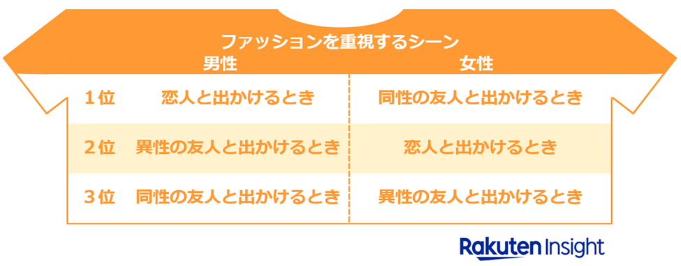 ・ファッションを重視するシーンは、女性では「同性の友人との外出時」が8割以上