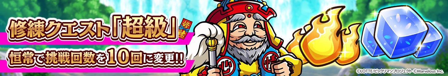 これまで「育成キャンペーン」を実施して、「氣力の神殿」および「プリズム鉱山」の「超級」に挑戦できる上限回数を10回に変更しておりましたが、本メンテナンス後より恒常で10回に変更いたします。