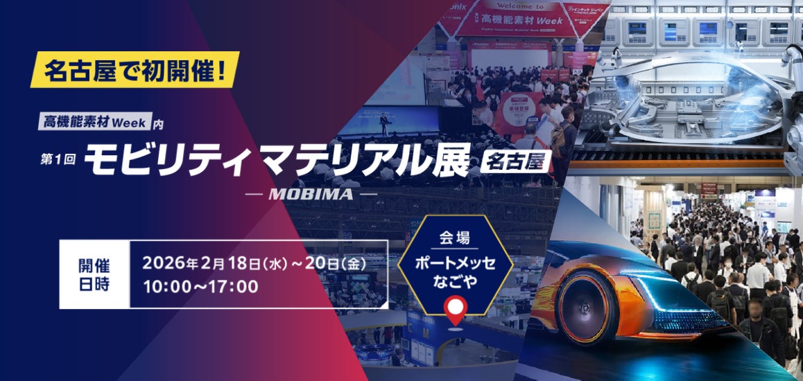 RX Japan合同会社(本社:東京都中央区、代表執行役員社長:田中岳志)は、2026年2月18日(水) - 20日(金)の期間、「高機能素材Week 内 第1回 モビリティ マテリアル展」を名古屋で初めて開催します。