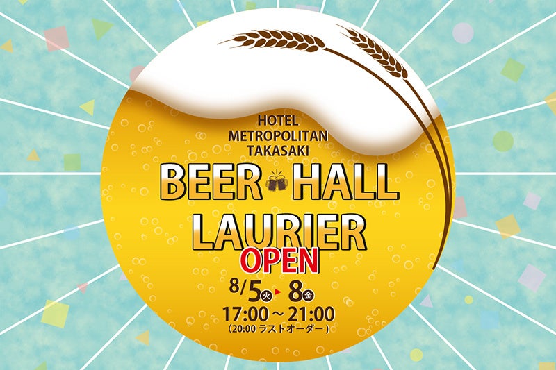 【2025年7月】高崎 --- 株式会社ホテルメトロポリタン高崎(住所:群馬県高崎市八島町222番地/代表取締役社長:川又正明/総支配人:前田淳)では、レストラン「ブラッスリーローリエ」にて、夏の特別イベント【ビアホールローリエ】を2025年8月5日(火)から8日(金)までの4日間限定で開催いたします。