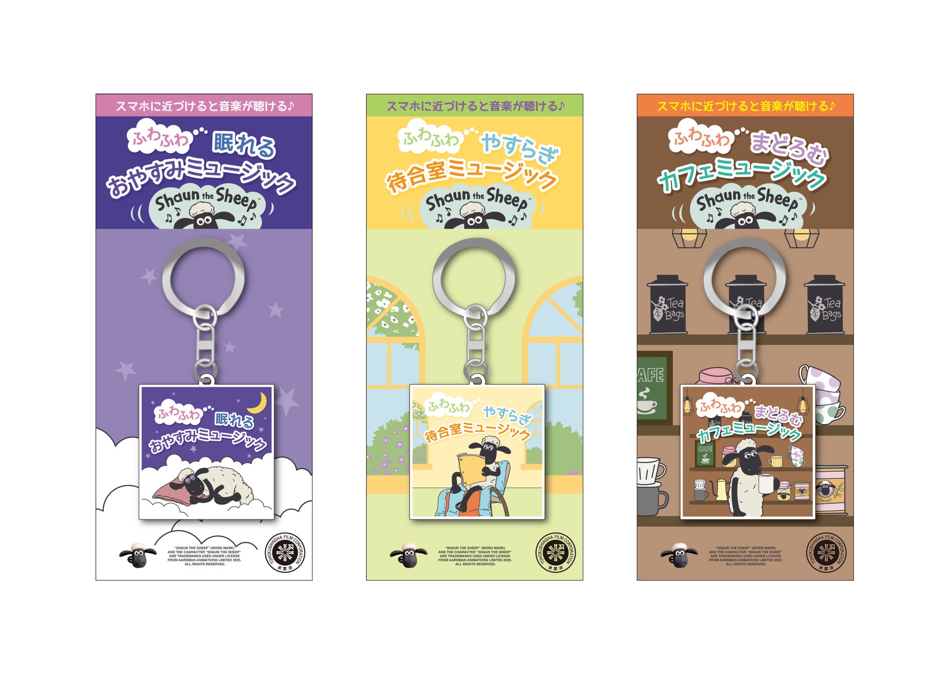 「ふわふわミュージック」シリーズ3タイトルの「ミュージックキーチェーン」もCDと同時発売します。「ミュージックキーチェーン」はNFCチップが内蔵されたキーホルダーで、スマートフォンを近づけるだけでコンテンツへアクセスできる次世代の音楽商品です。『ふわふわ眠れるおやすみミュージック』のほか、イージーリスニング定番曲のベスト盤といえる『ふわふわやすらぎ待合室ミュージック』、ラウンジ系の決定盤『ふわふわまどろむカフェミュージック』の計3作品となり、すべてに「ひつじのショーン」の可愛らしいイラストがジャケット他のアートワークにフィーチャーされています。CDとミュージックキーチェーンは全国のCDショップの他、ユニバーサル ミュージックの公式通販サイトなどで販売予定です。