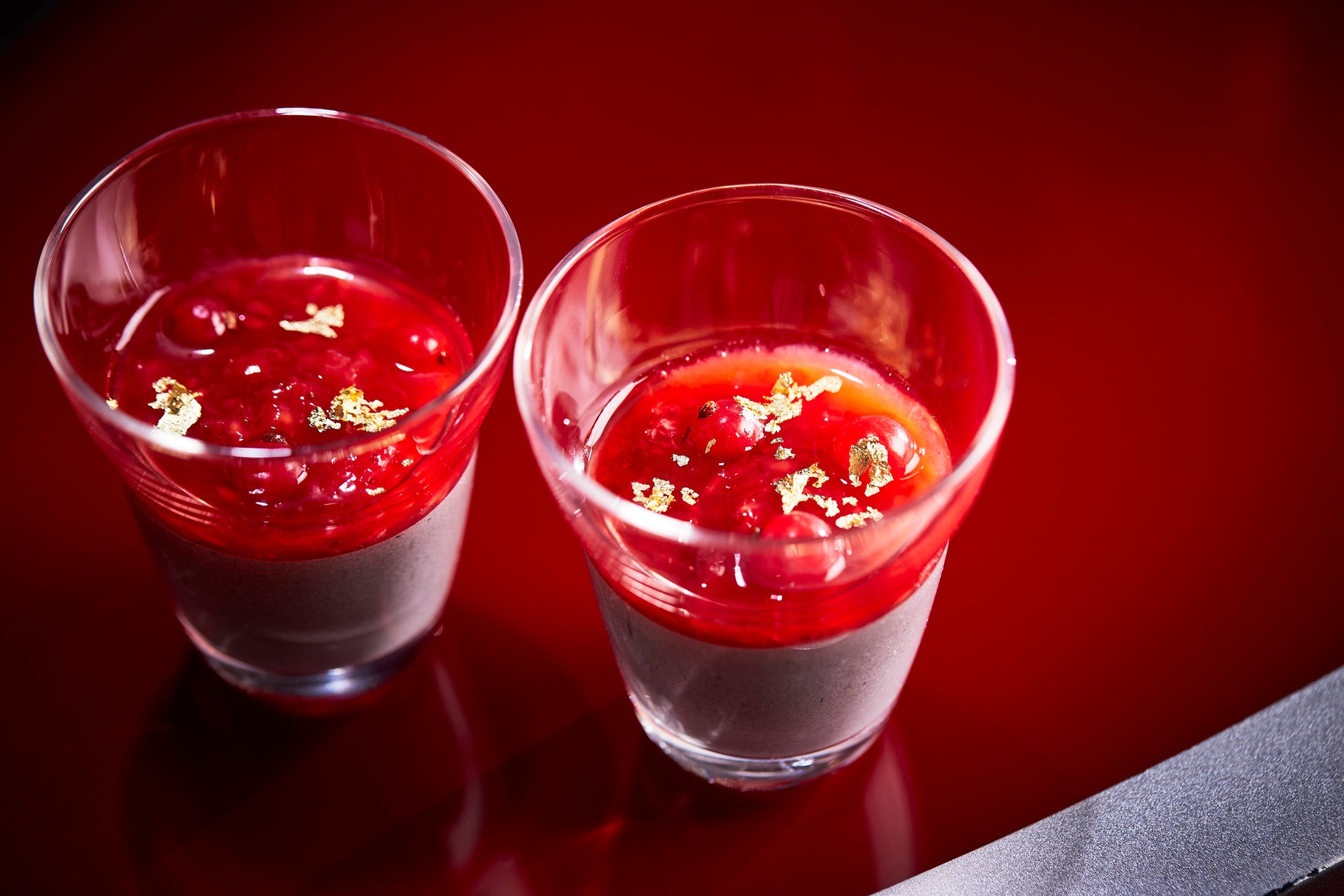 オレンジカルダモンパンナコッタ 赤い果実ソース