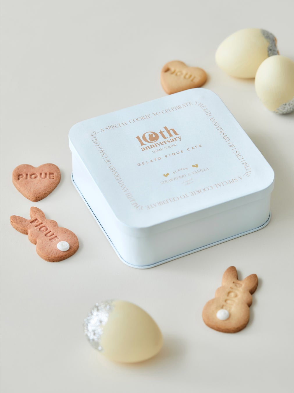 「USAGI ONLINE」10周年を記念して、「gelato pique cafe」コラボの限定クッキーアソート缶が登場。