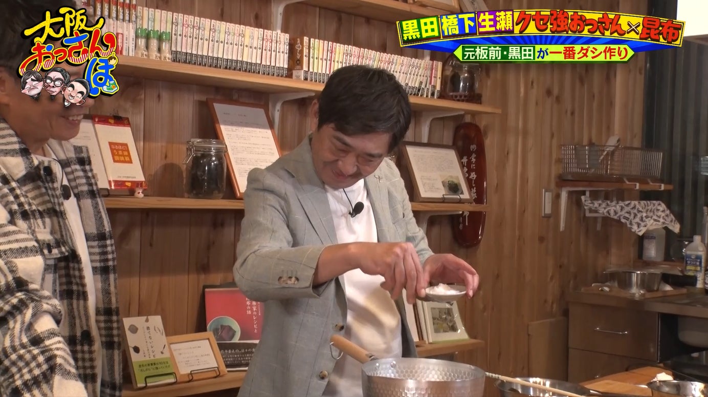 元板前の実力は…?メッセ黒田が昆布の老舗でダシ作りに挑戦!橋下徹&生瀬勝久と大阪・谷町で大暴れ!